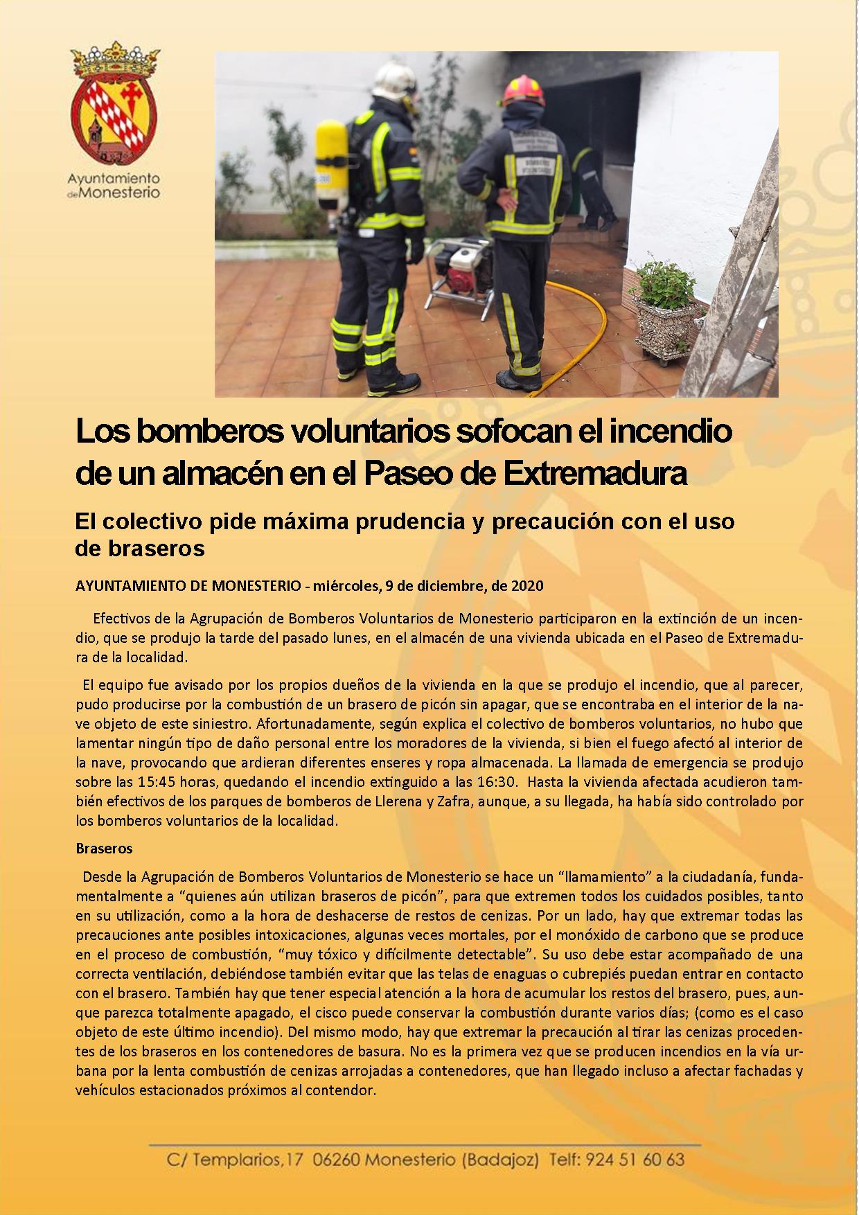 Los.bomberos voluntarios sofocan el incendio en un almacén del Paseo de Extremadura