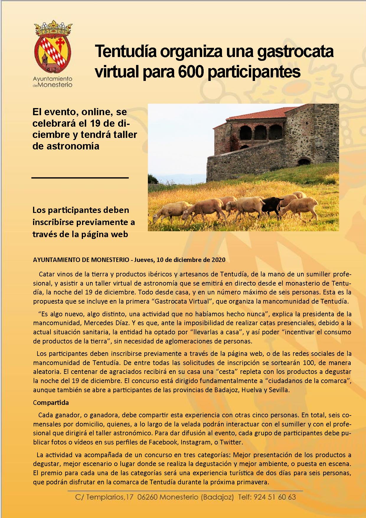 Tentudia organiza una gastrocata virtual para 600 personaa