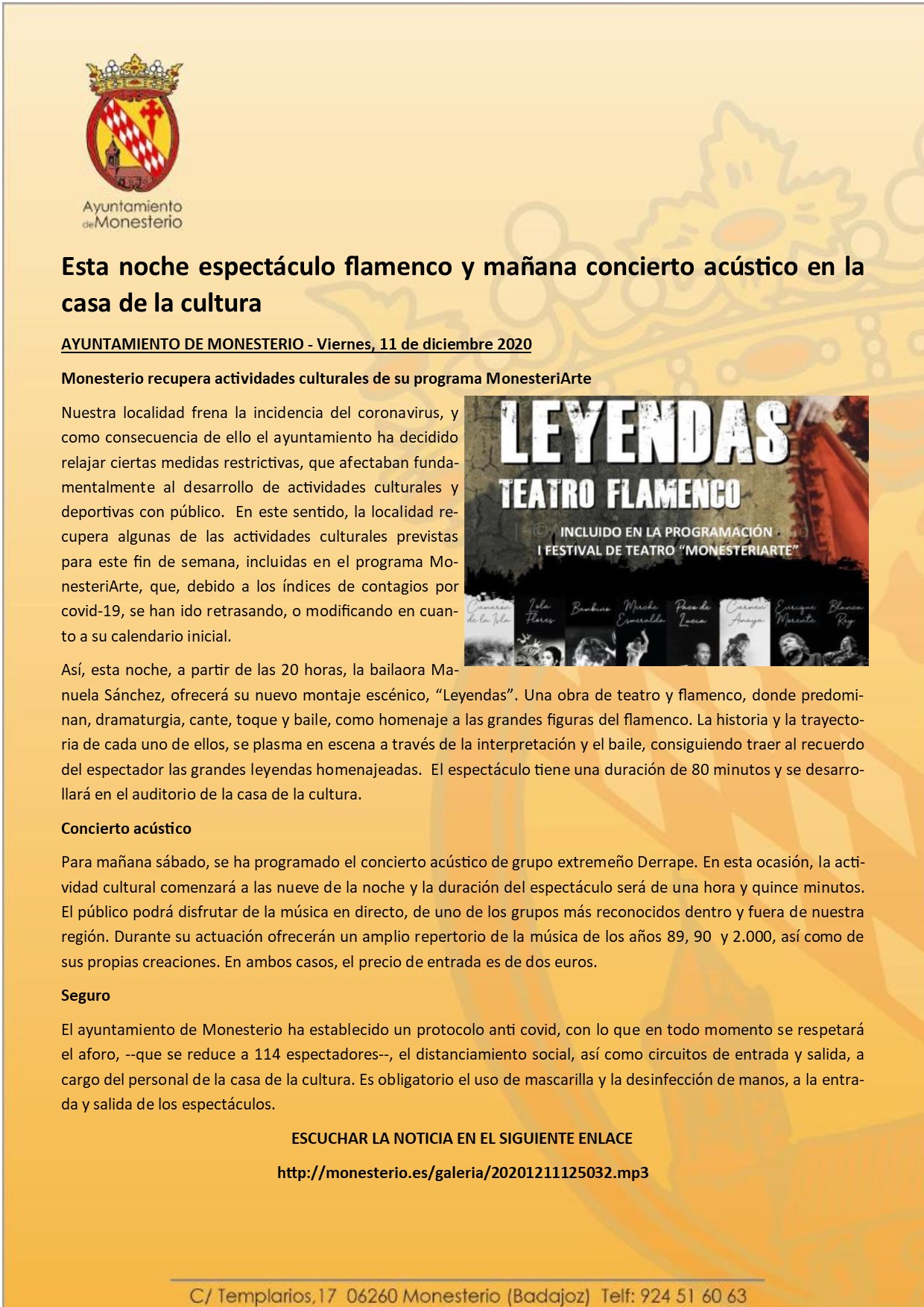 Esta noche espectáculo flamenco y mañana concierto acústico en la casa de la cultura