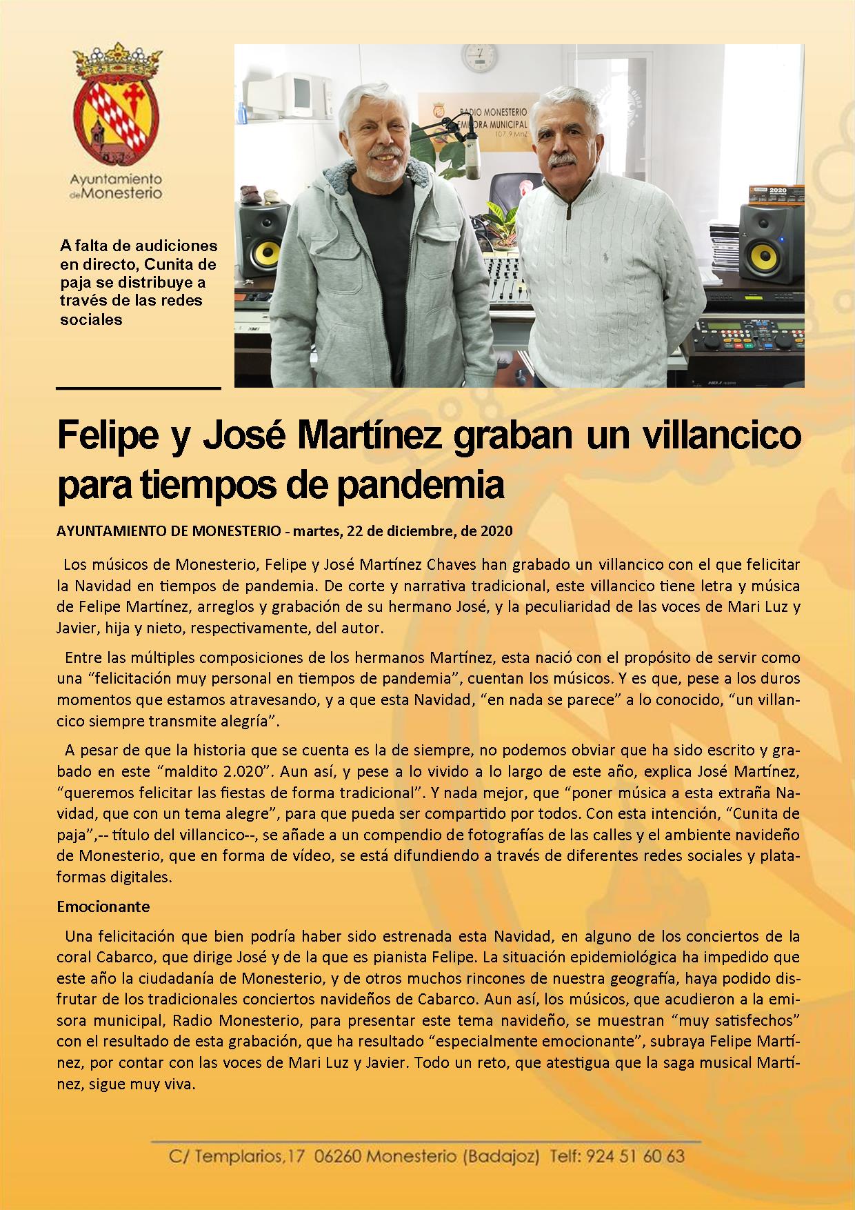Felipe y José Martínez graban un villancico para tiempo de pandemia
