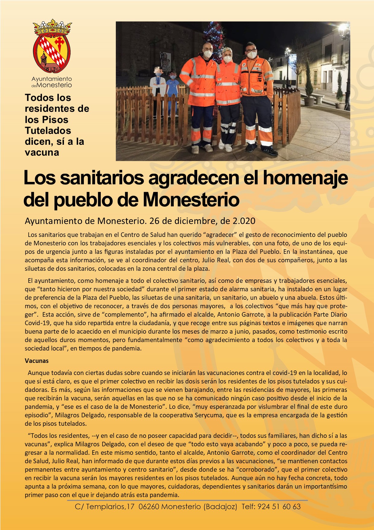 Los sanitarios agradecen el homenaje del pueblo de Monesterio