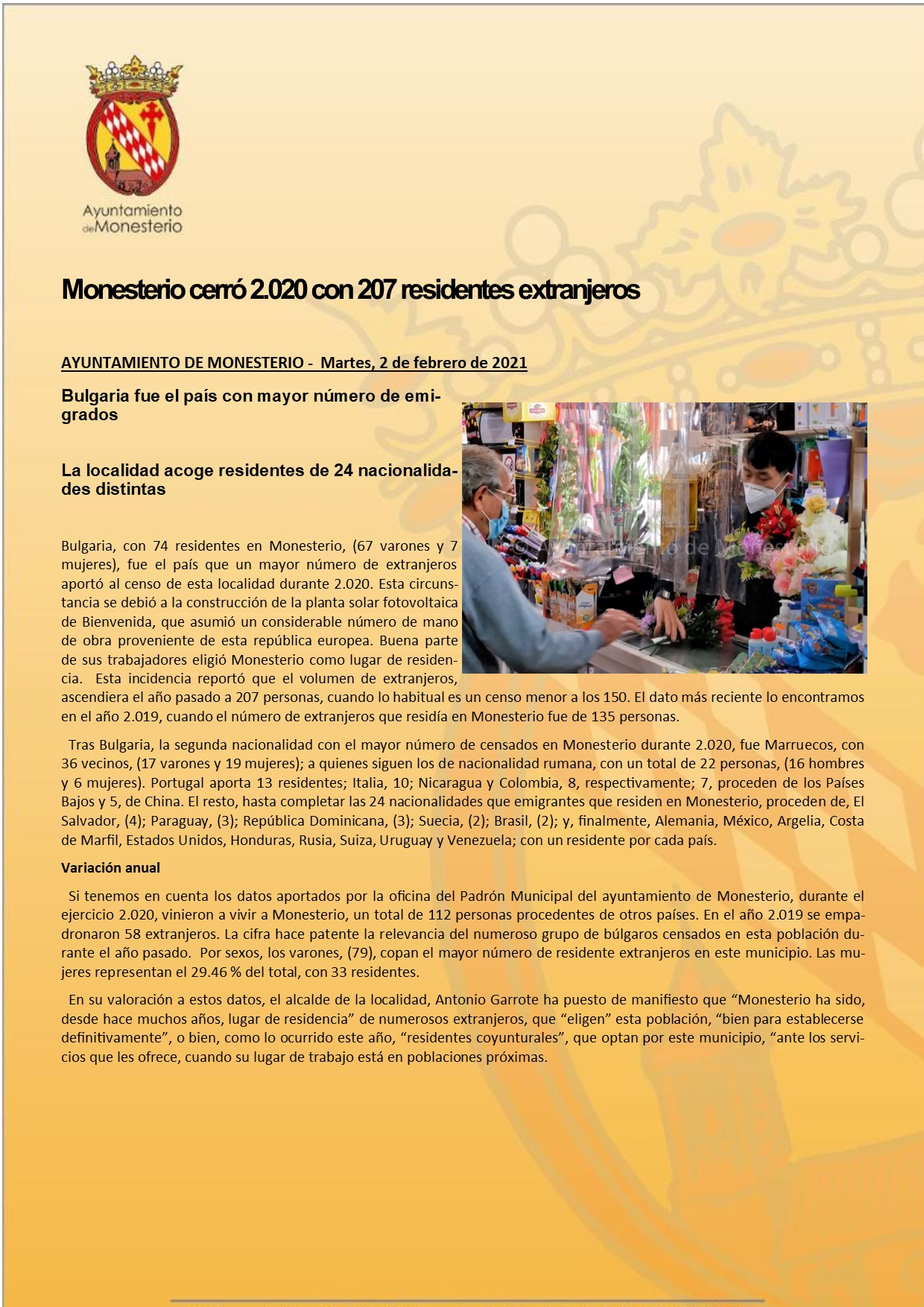 Monesterio cerró 2.020 con 207 residentes extranjeros