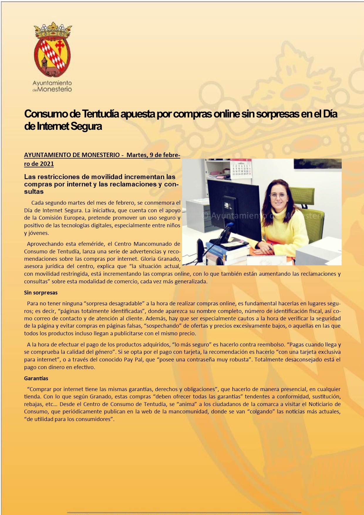 Consumo de Tentudía apuesta por compras online sin sorpresas en el Día de Internet Segura