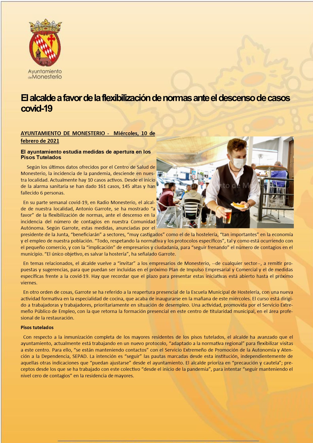 El alcalde a favor de la flexibilización de normas ante el descenso de casos covid-19