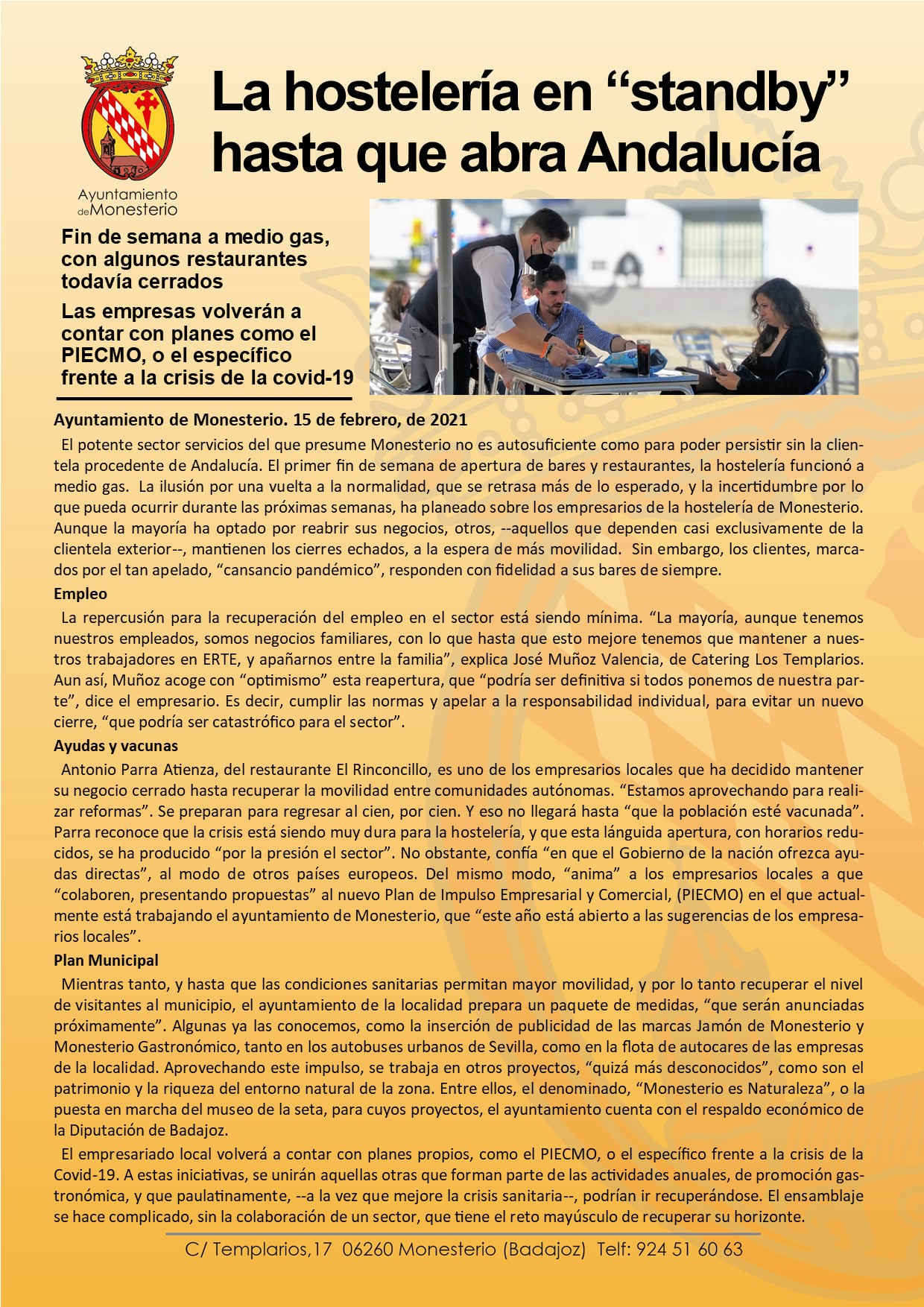 La hostelería de Monesterio en “standby” hasta que abra Andalucía