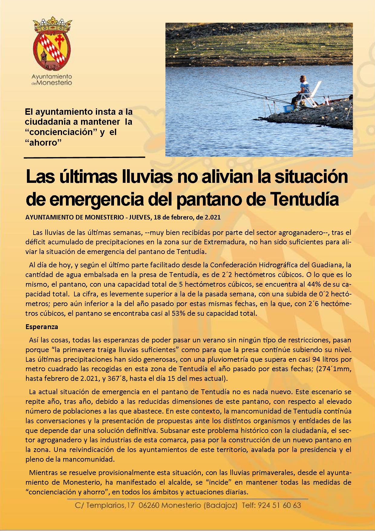 Las últimas lluvias no alivian la situación de emergencia del pantano de Tentudía