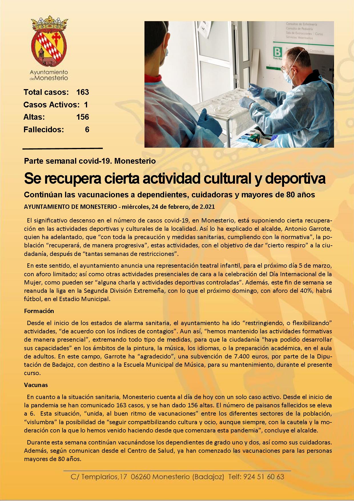 Parte semanal covid-19: Se recupera cierta actividad cultural y deportiva