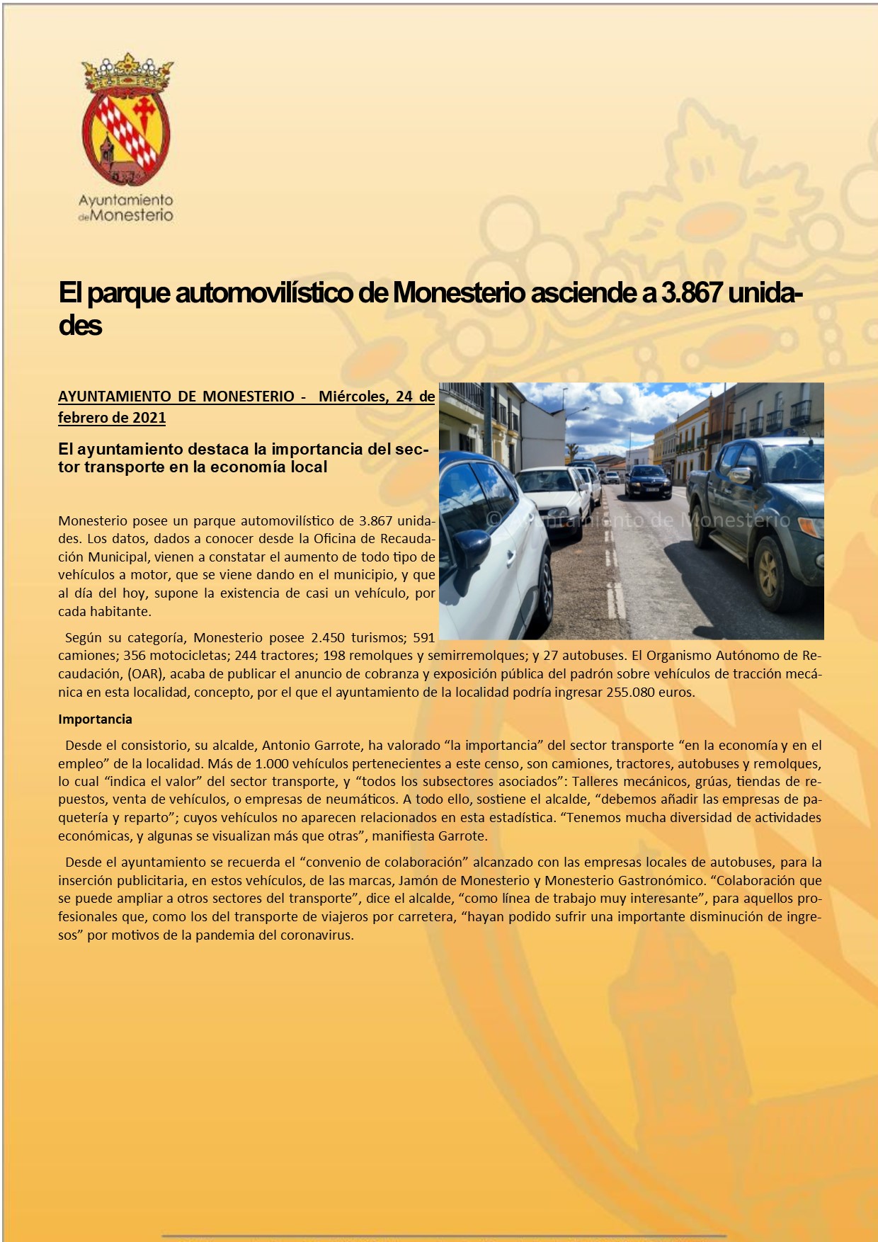 El parque automovilístico de Monesterio asciende a 3.867 unidades