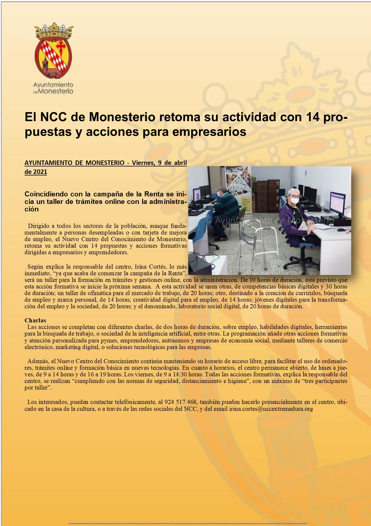 El NCC de Monesterio retoma su actividad con 14 propuestas y acciones para empresarios