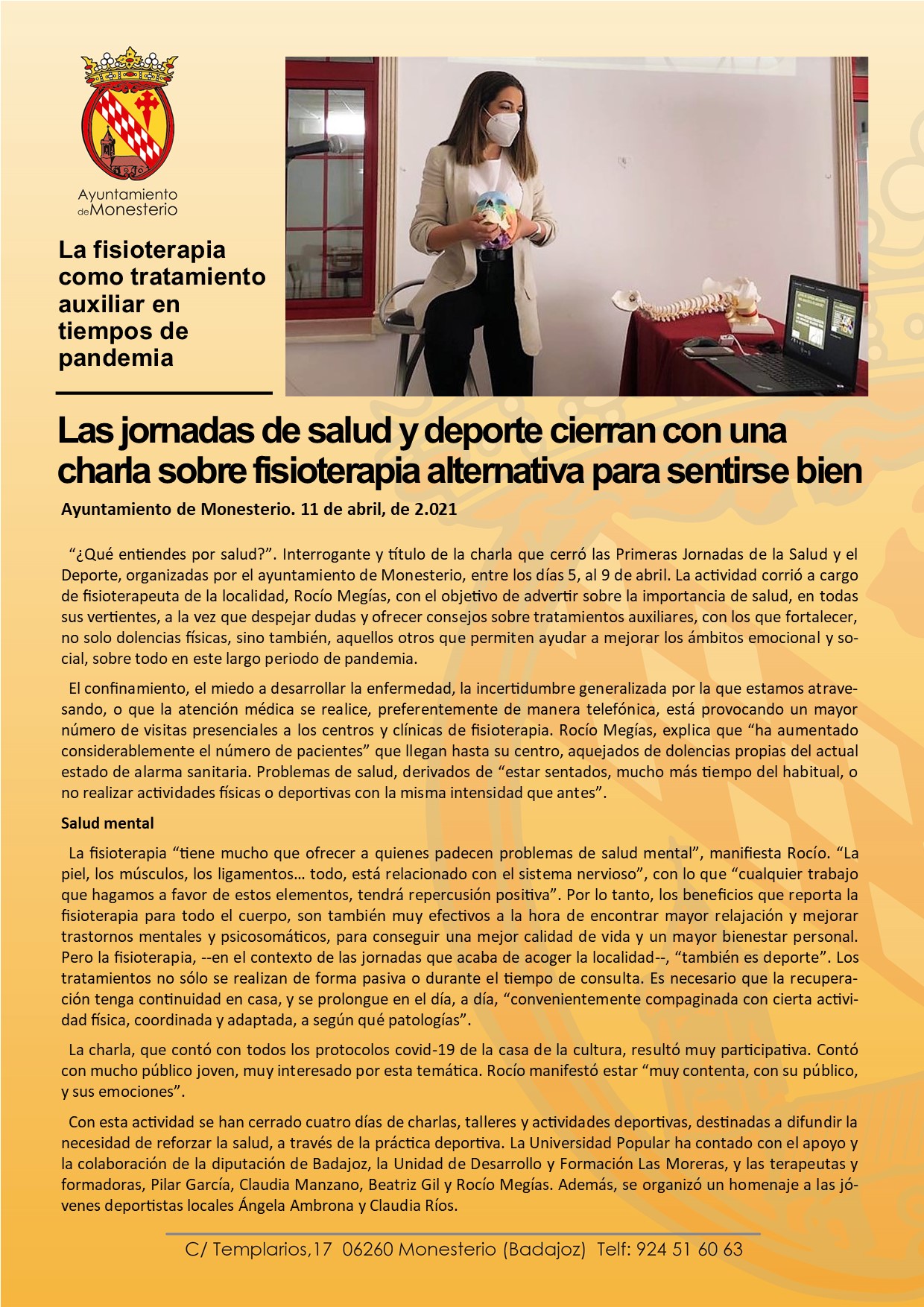 Las jornadas de salud y deporte cierran con una charla sobre fisioterapia alternativa para sentirse bien