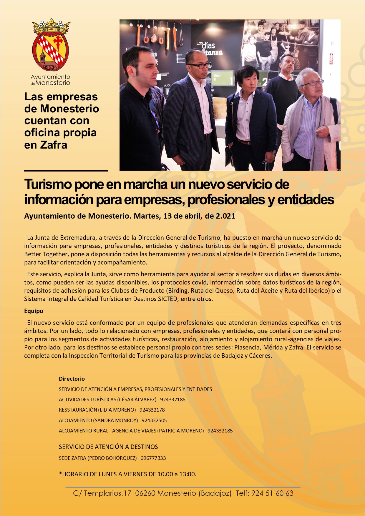 Turismo pone en marcha un nuevo servicio de información para empresas, profesionales y entidades.