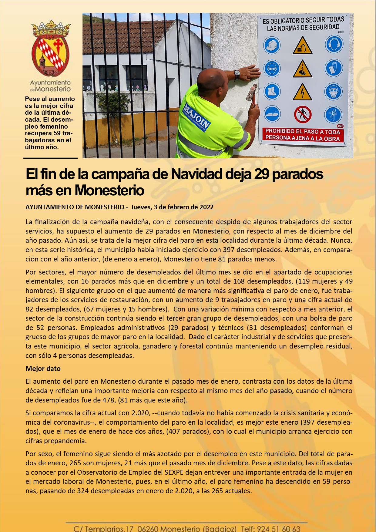 El fin de la campaña de Navidad deja 29 parados más en Monesterio