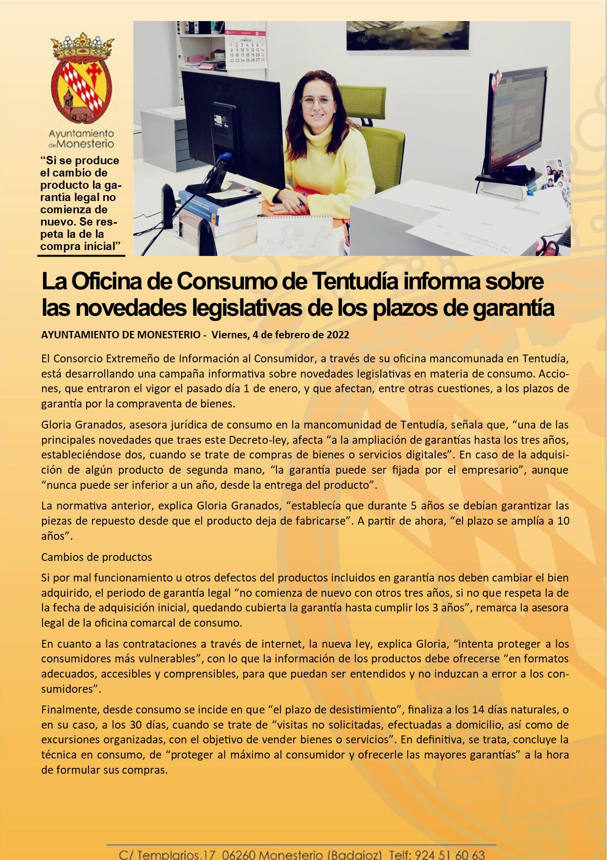 La Oficina de Consumo de Tentudía informa sobre las novedades legislativas de los plazos de garantía