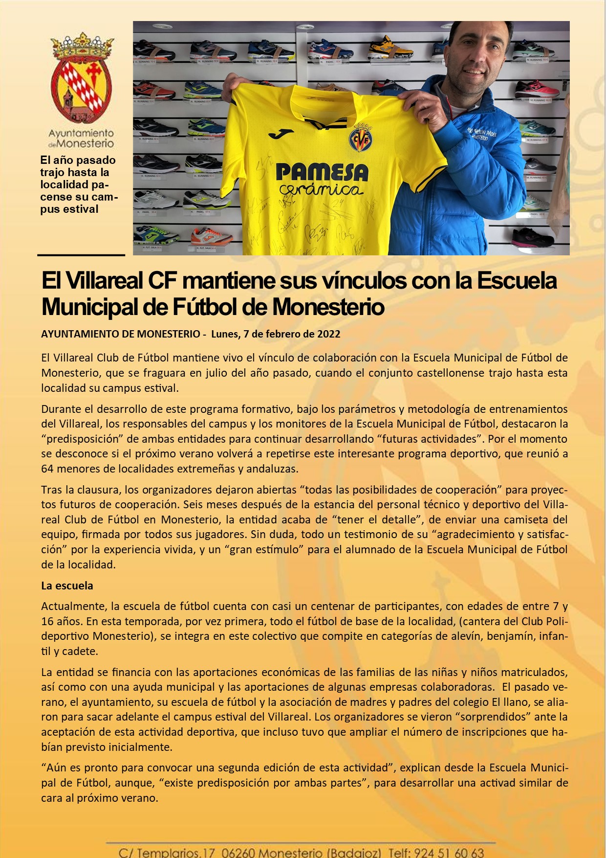 El Villareal CF mantiene sus vínculos con la Escuela Municipal de Fútbol de Monesterio