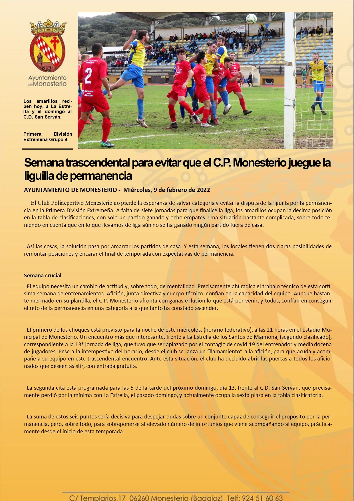 Semana trascendental para evitar que el C.P. Monesterio juegue la liguilla de permanencia