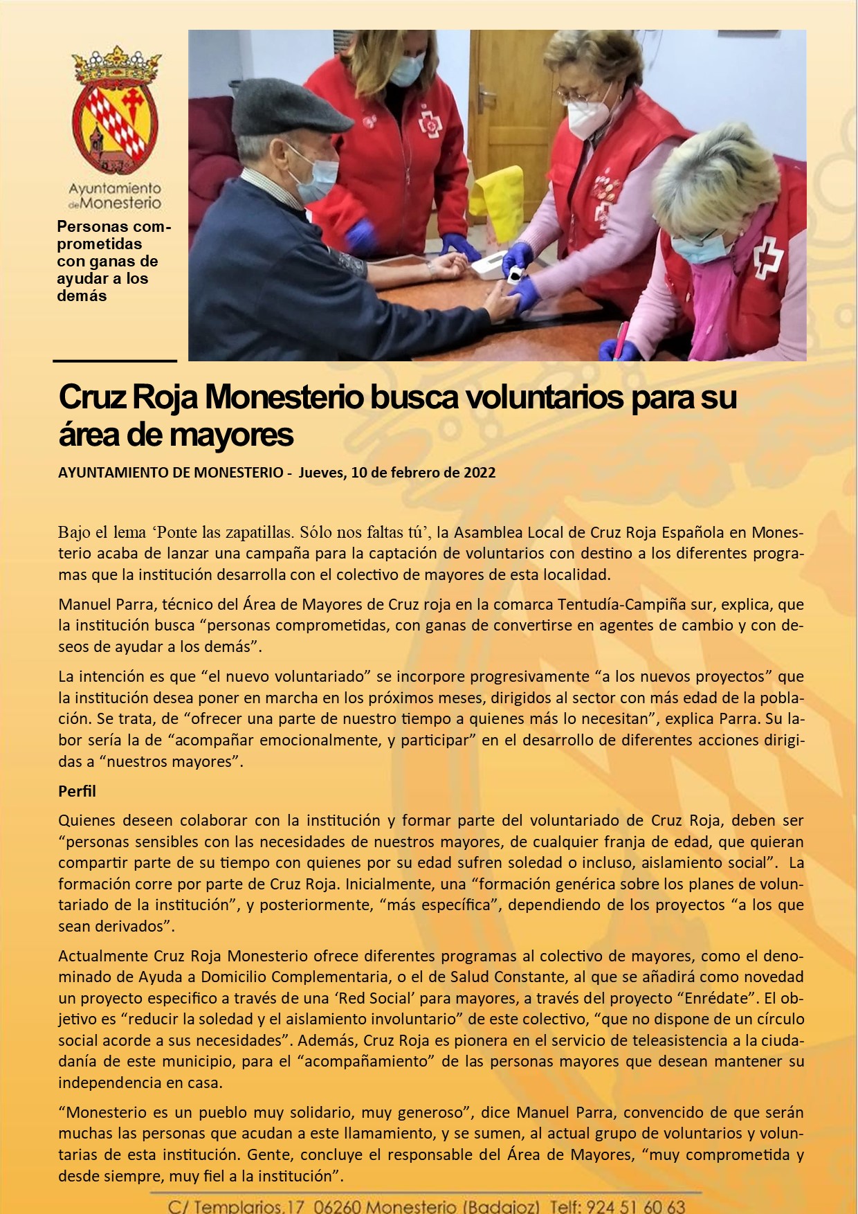 Cruz Roja Monesterio busca voluntarios para su área de mayores