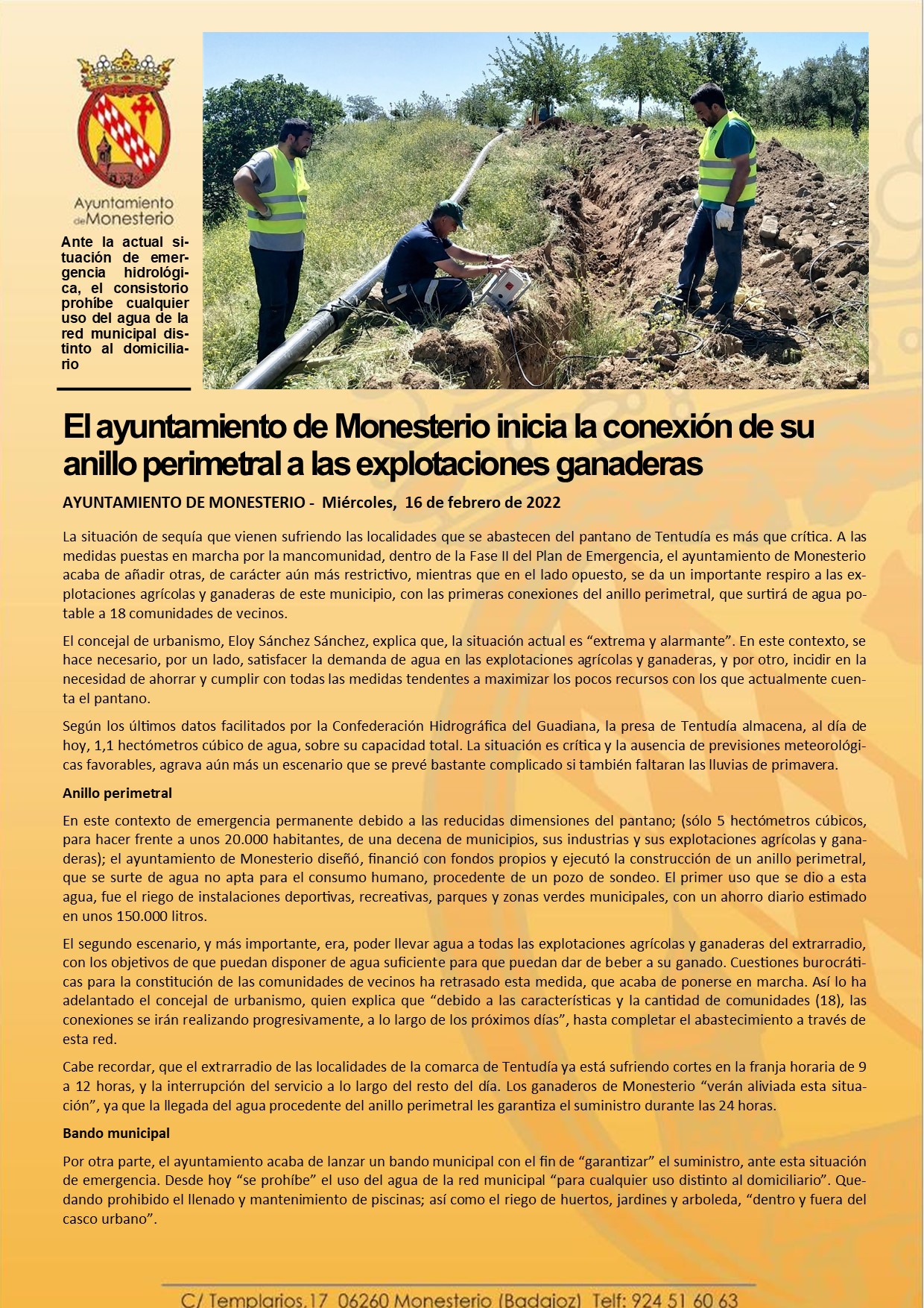 El ayuntamiento de Monesterio inicia la conexión de su anillo perimetral a las explotaciones ganaderas
