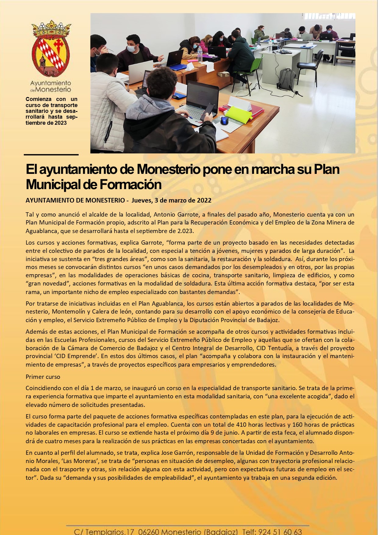 El ayuntamiento de Monesterio pone en marcha su Plan Municipal de Formación