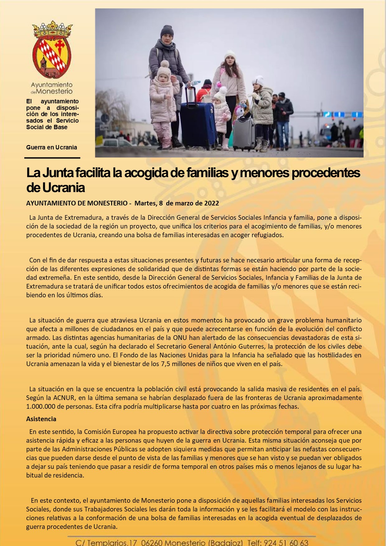 La Junta facilita la acogida de familias y menores procedentes de Ucrania