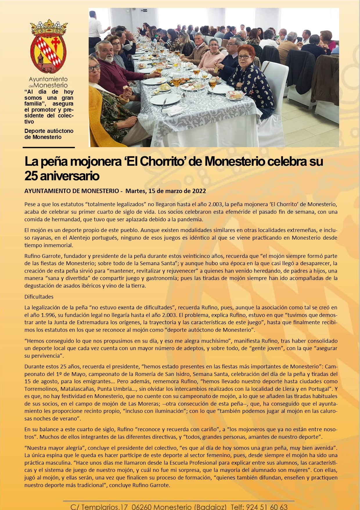 La peña mojonera ‘El Chorrito’ de Monesterio celebra su 25 aniversario