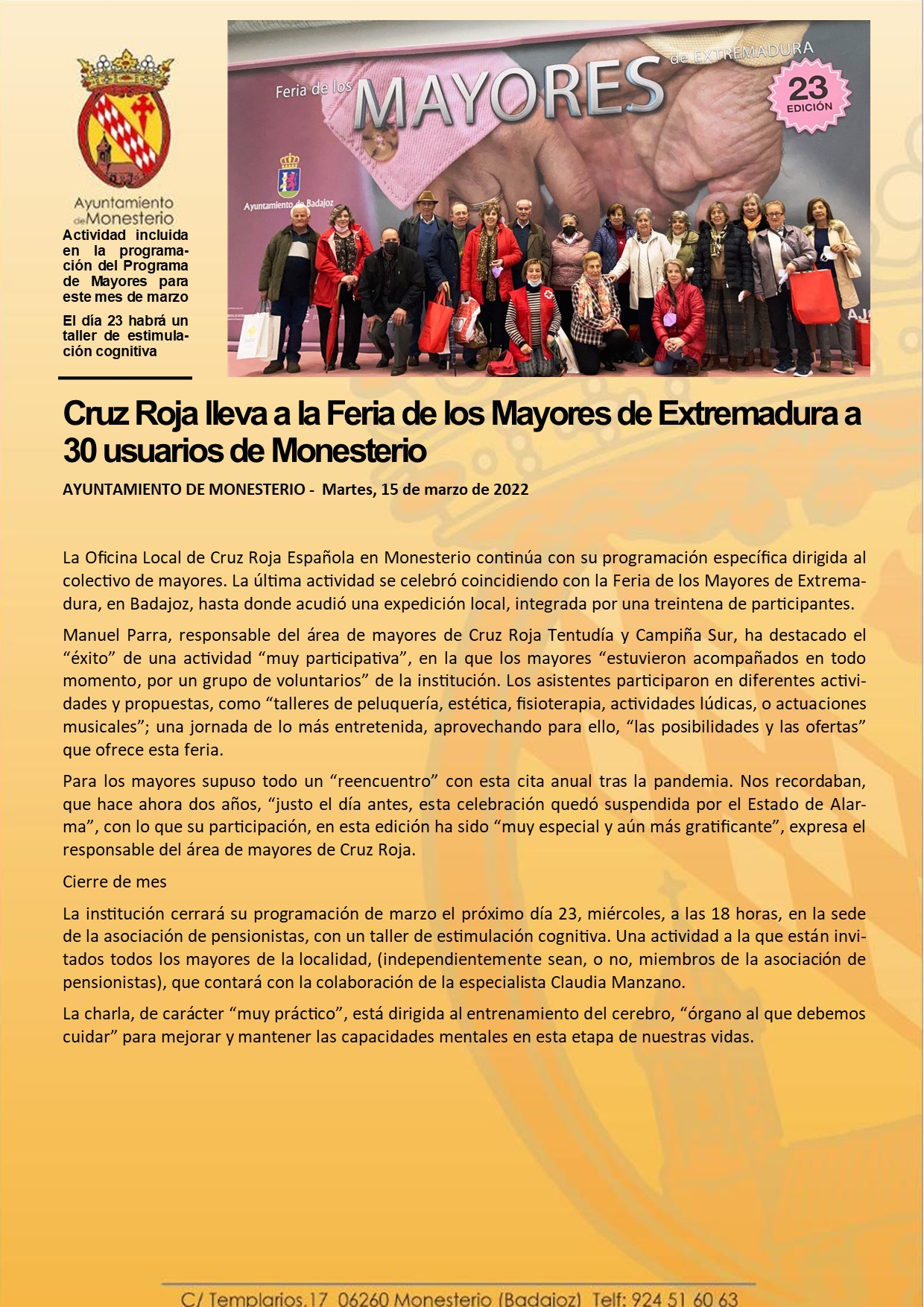 Cruz Roja lleva a la Feria de los Mayores de Extremadura a 30 usuarios de Monesterio