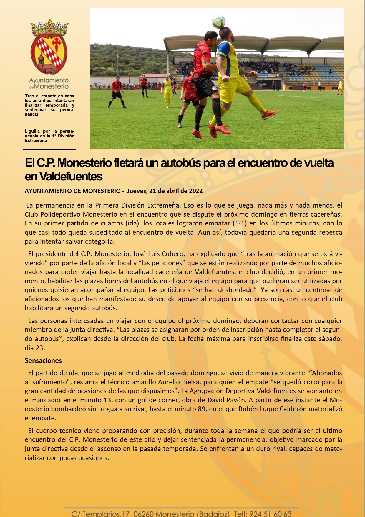El C.P. Monesterio fletará un autobús para el encuentro de vuelta en Valdefuentes