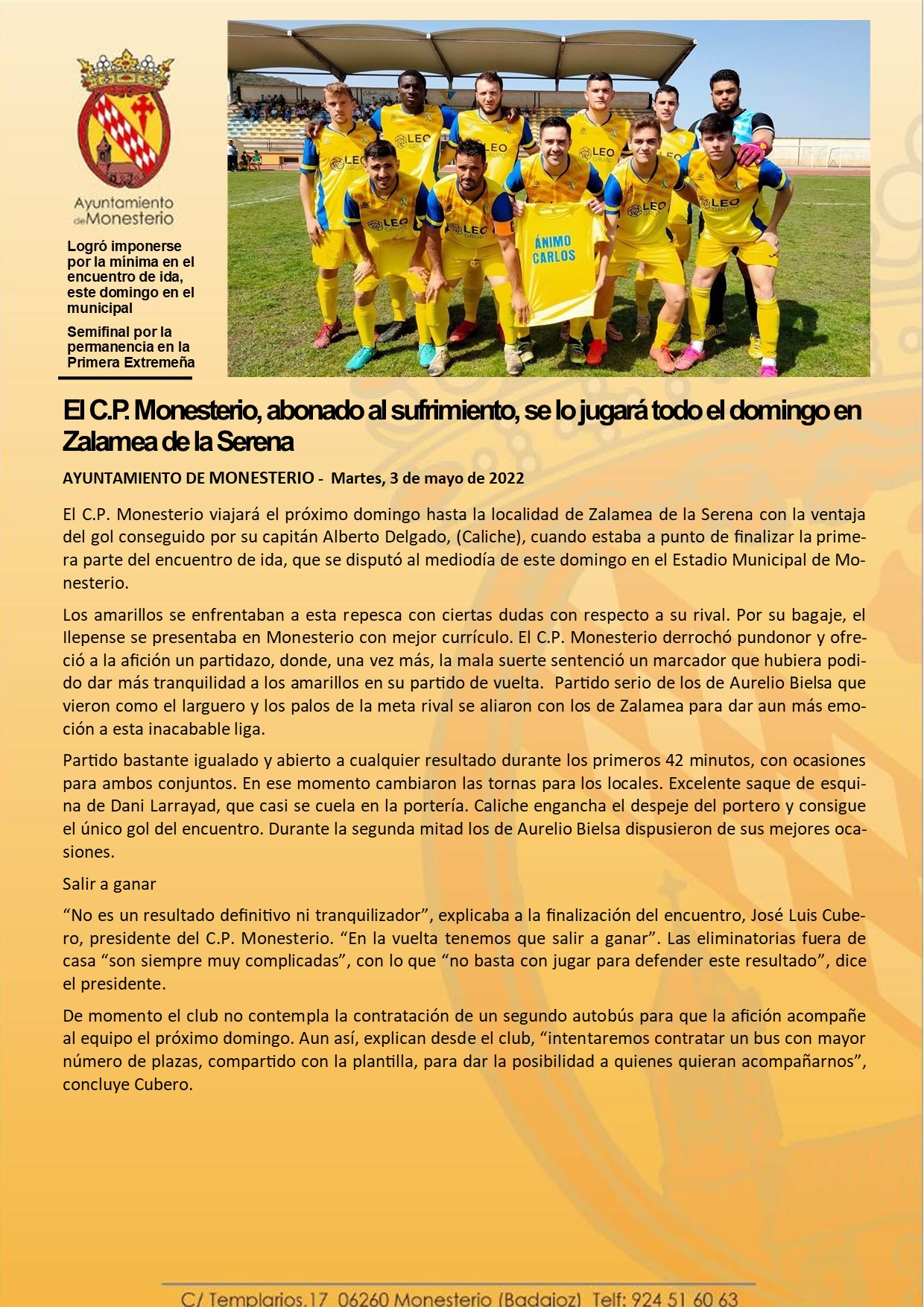 El C.P. Monesterio, abonado al sufrimiento, se lo jugará todo el domingo en Zalamea de la Serena