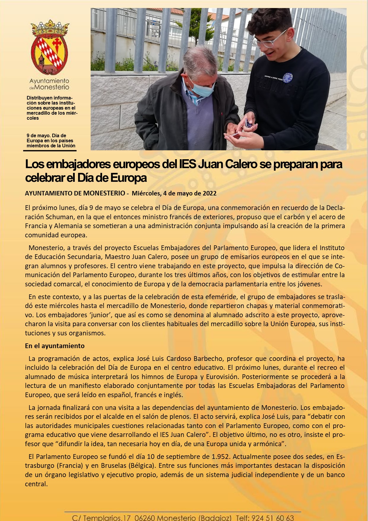 Los embajadores europeos del IES Juan Calero se preparan para celebrar el Día de Europa