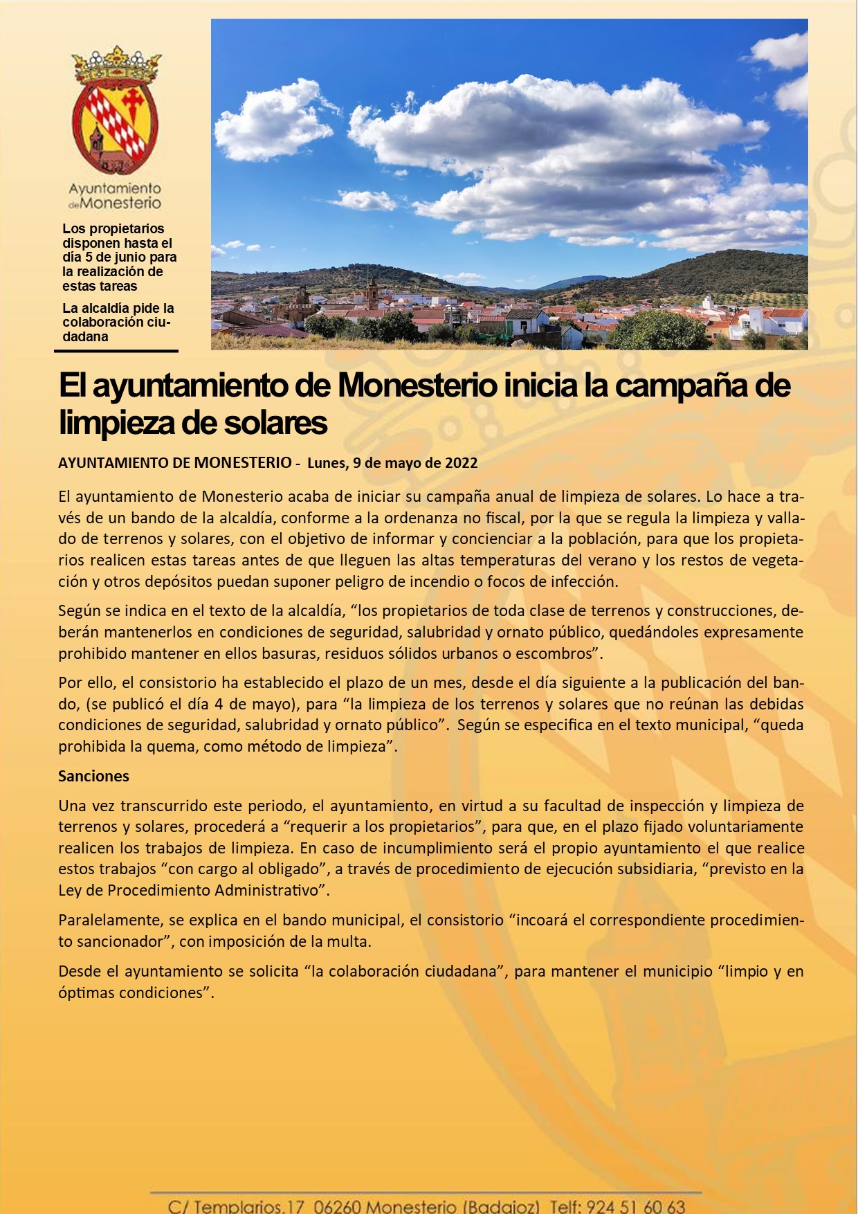 El ayuntamiento de Monesterio inicia la campaña de limpieza de solares