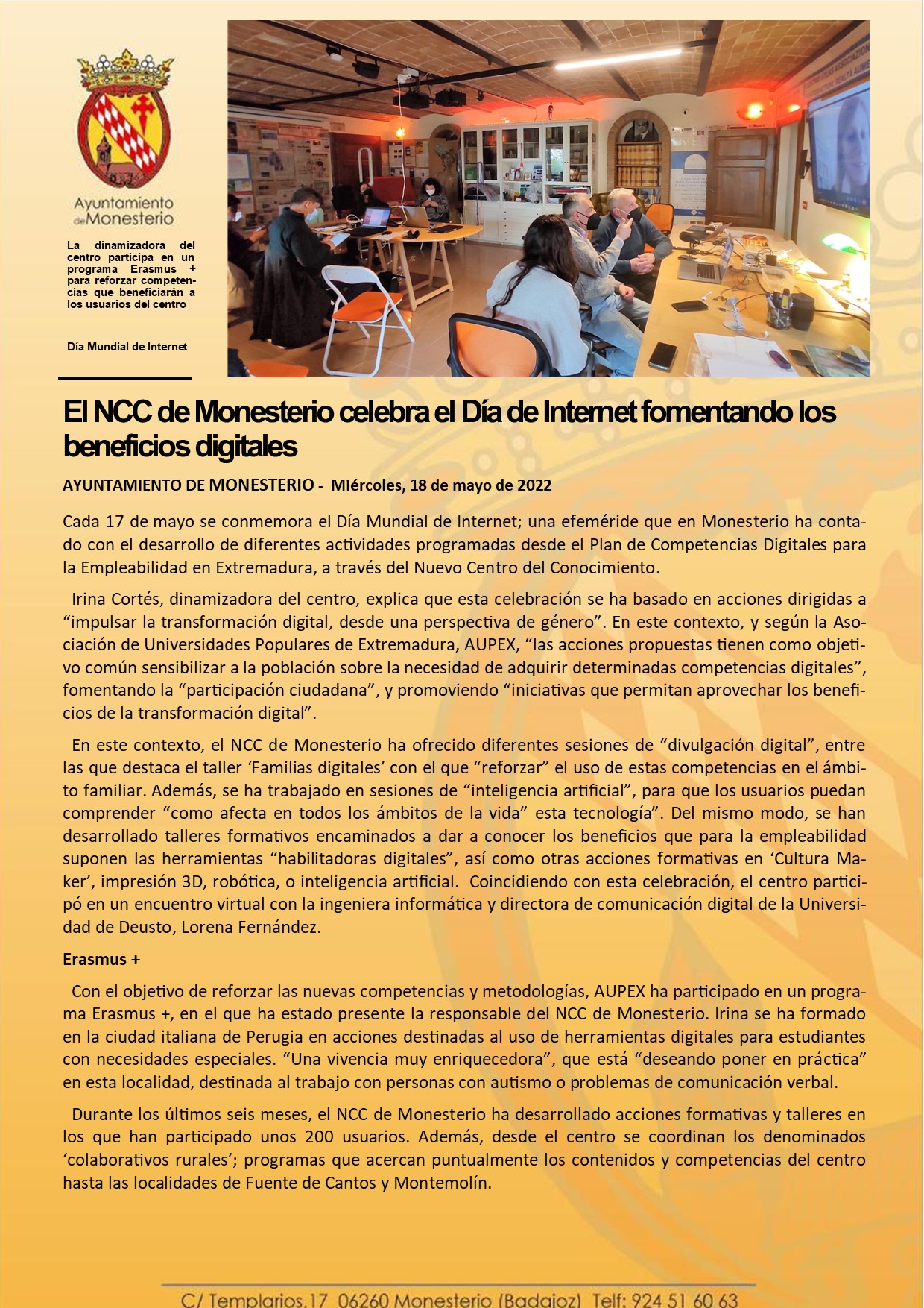 El NCC de Monesterio celebra el Día de Internet fomentando los beneficios digitales