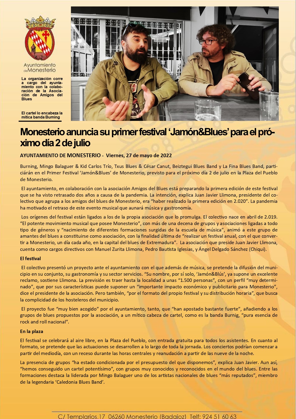 Monesterio anuncia su primer festival ‘Jamón&Blues’ para el próximo día 2 de julio