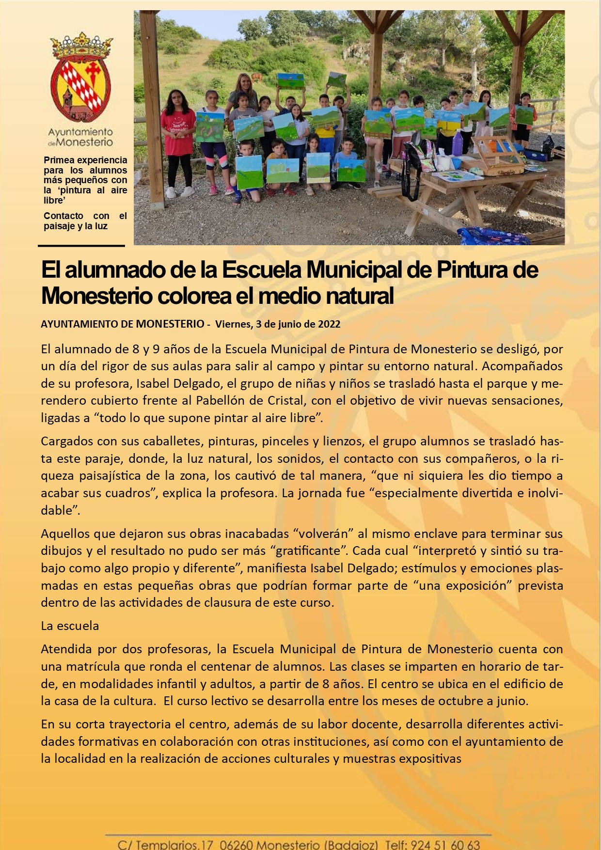 El alumnado de la Escuela Municipal de Pintura de Monesterio colorea el medio natural