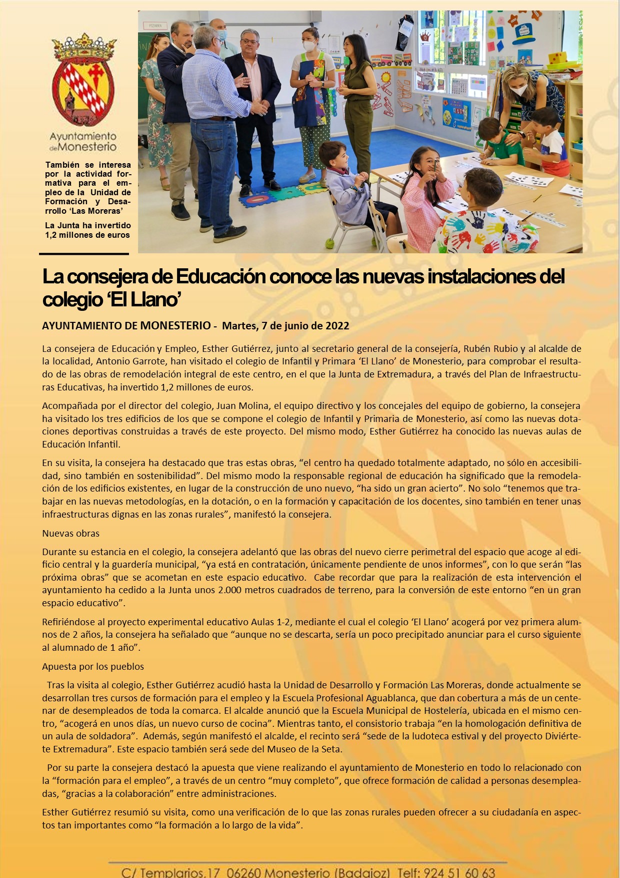 La consejera de Educación conoce las nuevas instalaciones del colegio ‘El Llano’