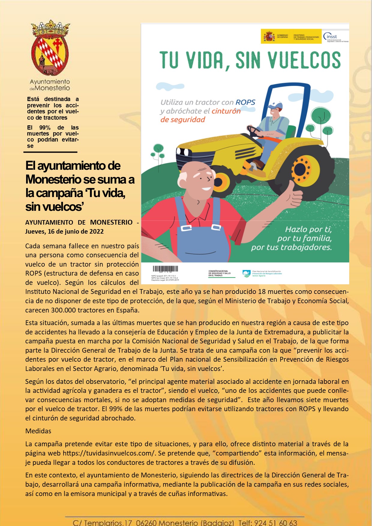 El ayuntamiento de Monesterio se suma a la campaña ‘Tu vida, sin vuelcos’