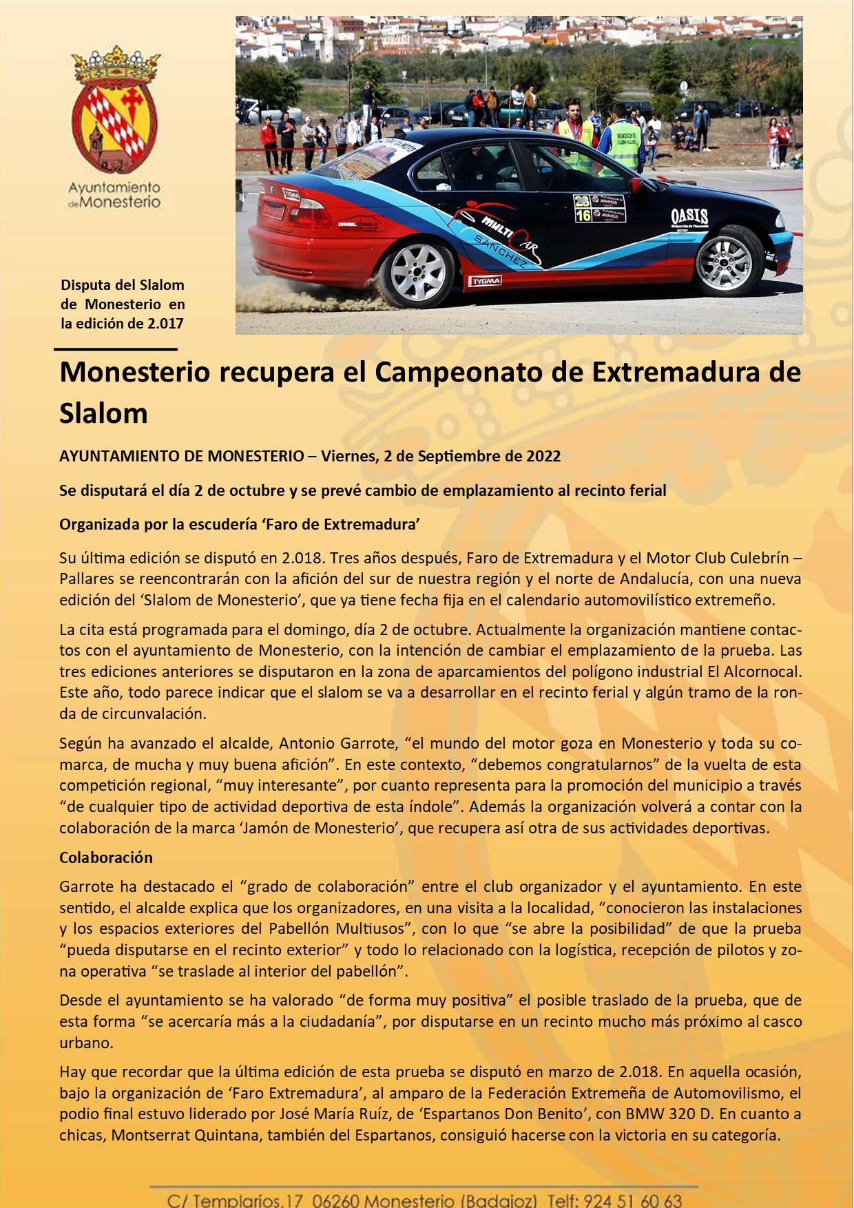 Monesterio recupera el Campeonato de Extremadura de Slalom