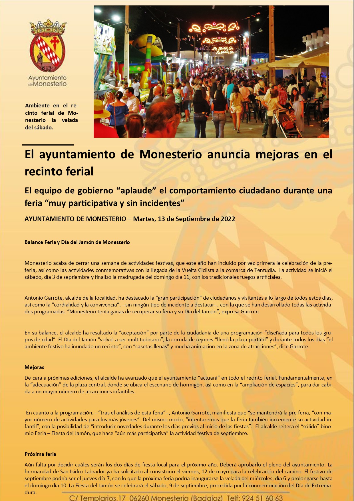 El ayuntamiento de Monesterio anuncia mejoras en el recinto ferial