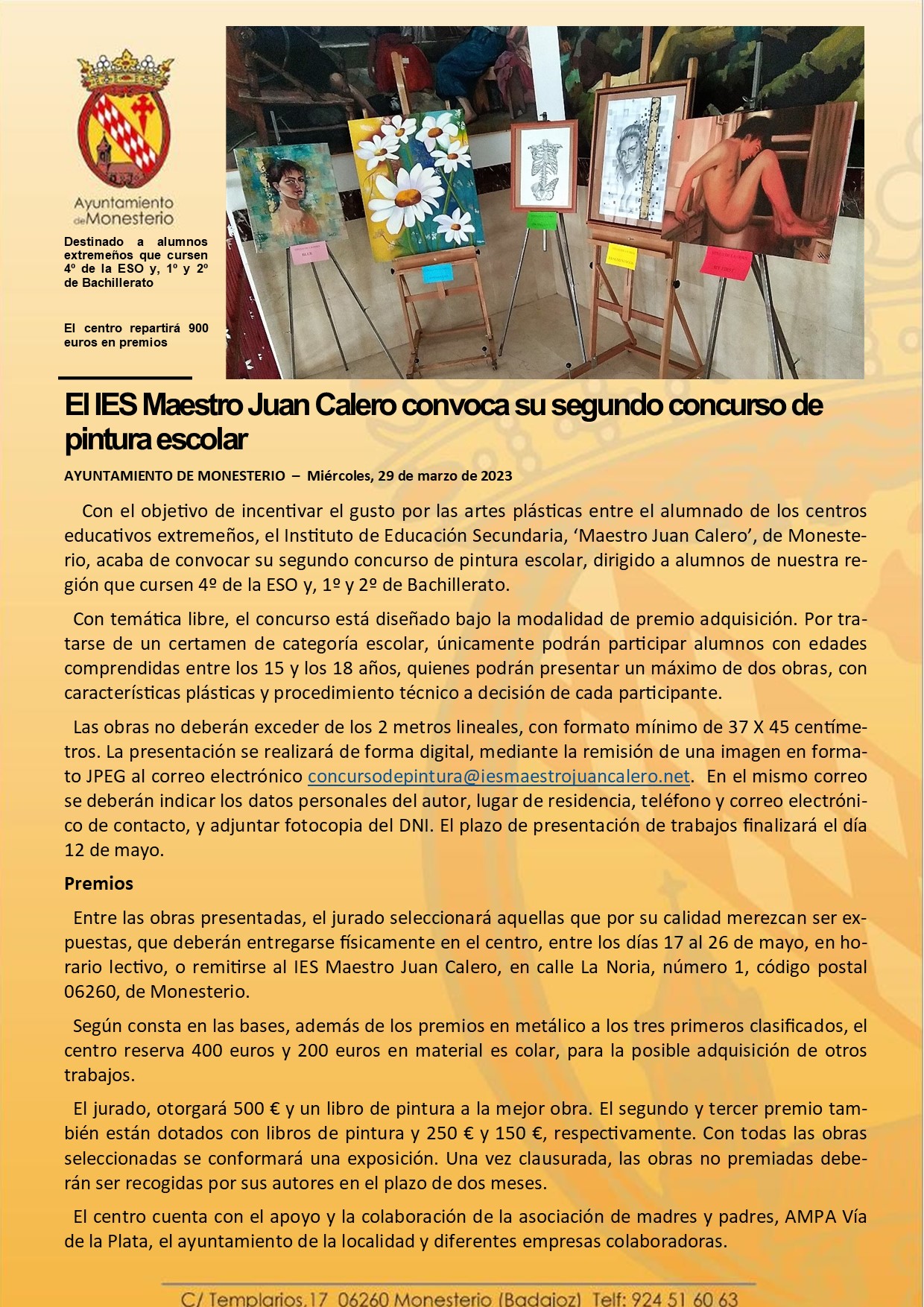 El IES Maestro Juan Calero convoca su segundo concurso de pintura escolar