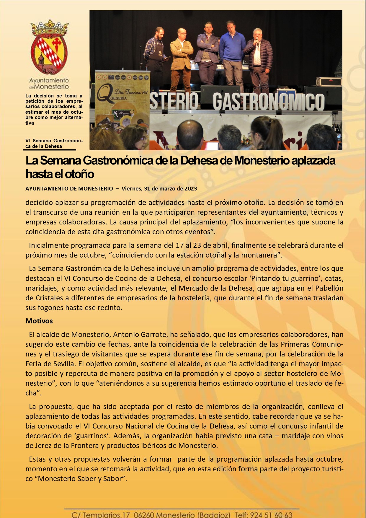 La Semana Gastronómica de la Dehesa de Monesterio aplazada hasta el otoño