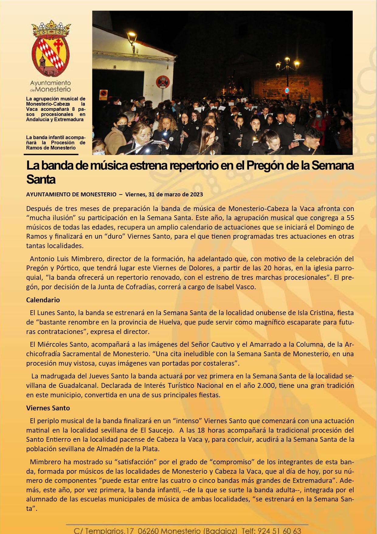 La banda de música estrena repertorio en el Pregón de la Semana Santa