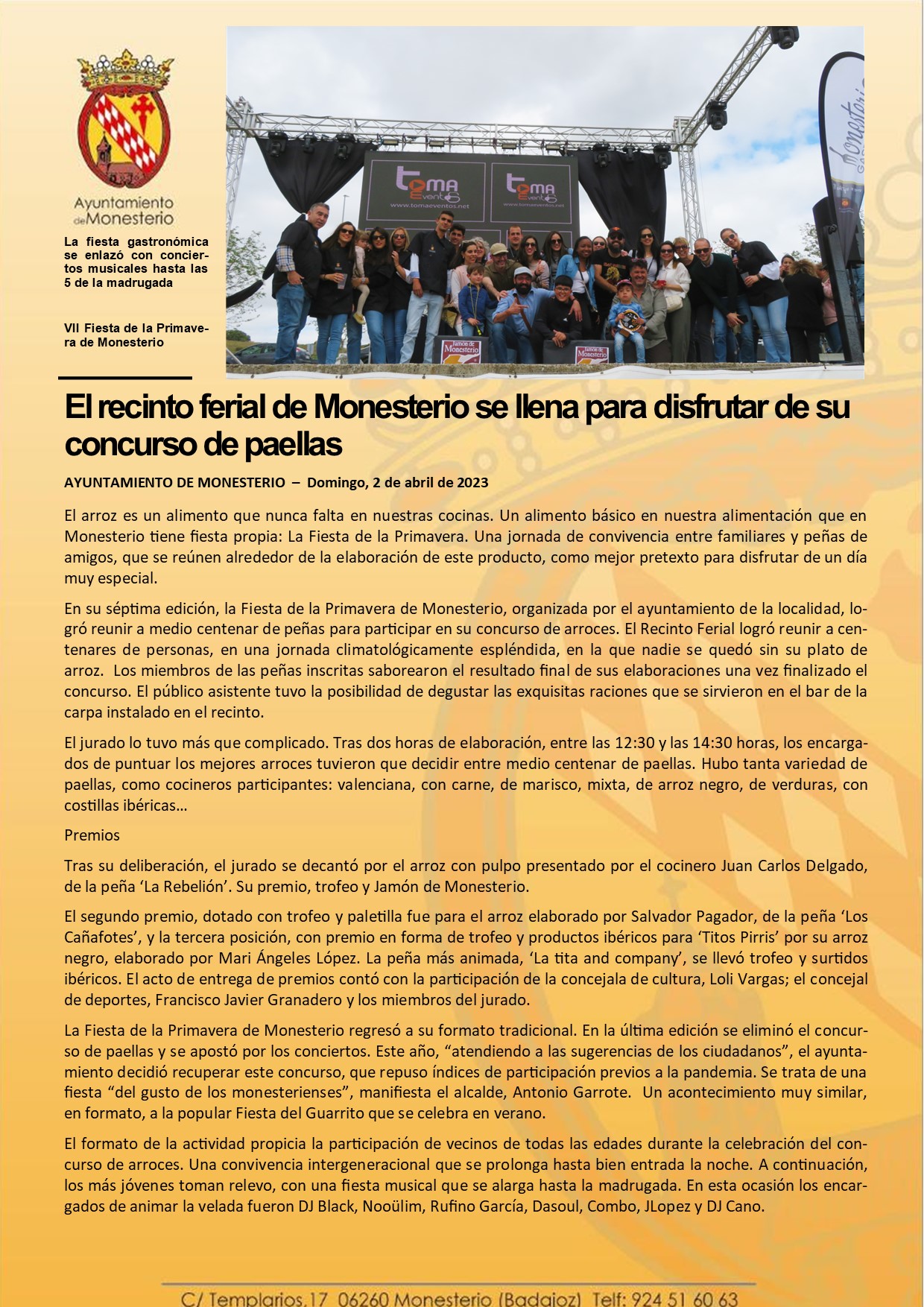 El recinto ferial de Monesterio se llena para disfrutar de su concurso de paellas