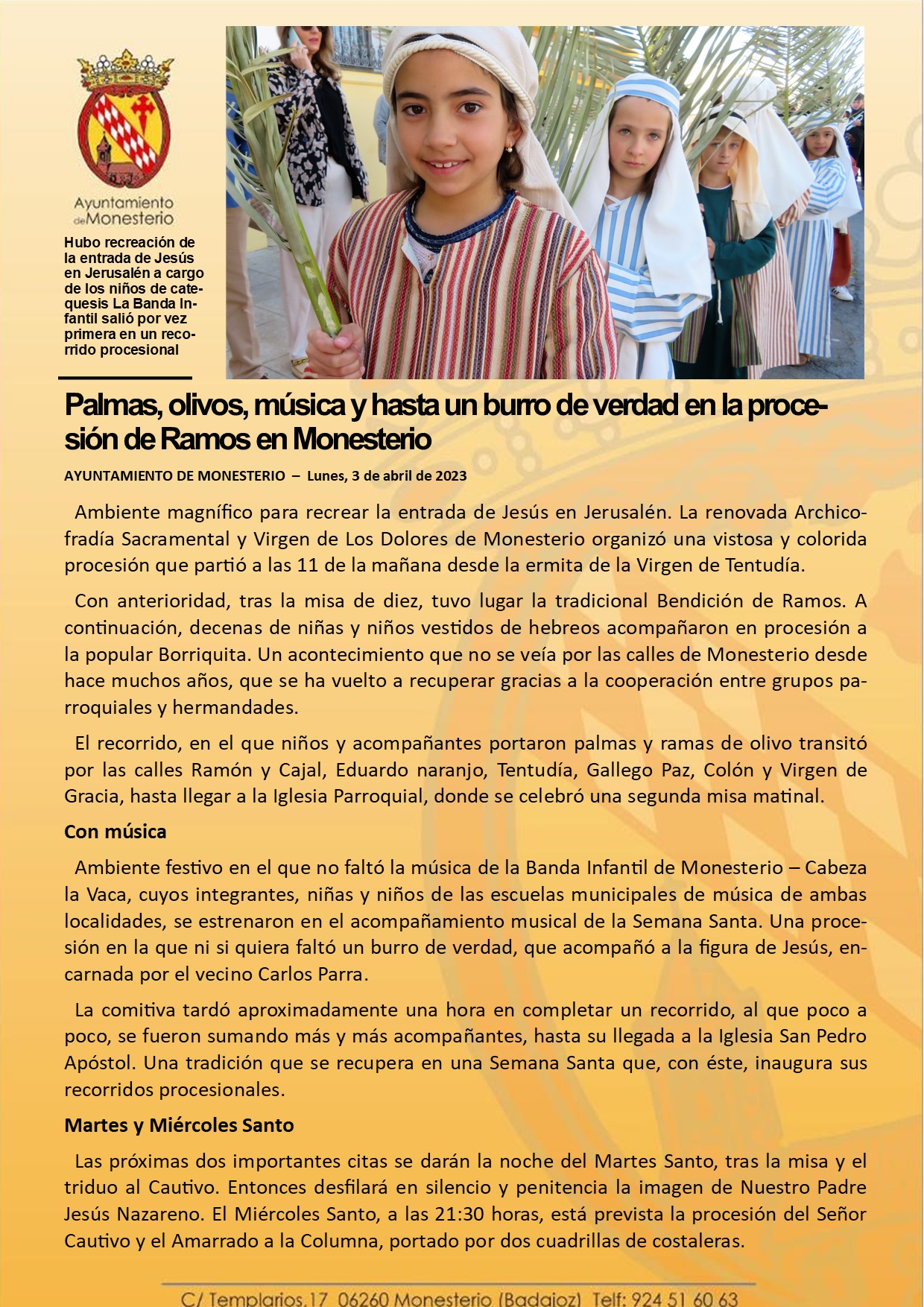 Palmas, olivos, música y hasta un burro de verdad en la procesión de Ramos en Monesterio