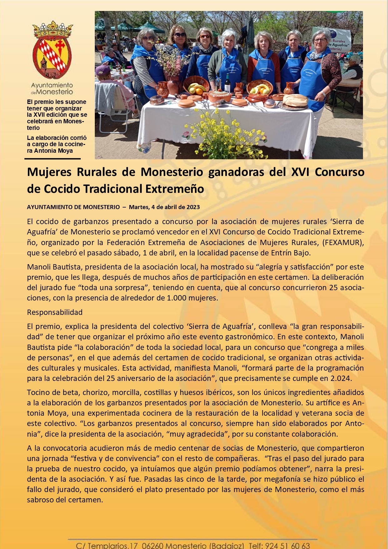 Mujeres Rurales de Monesterio ganadoras del XVI Concurso de Cocido Tradicional Extremeño