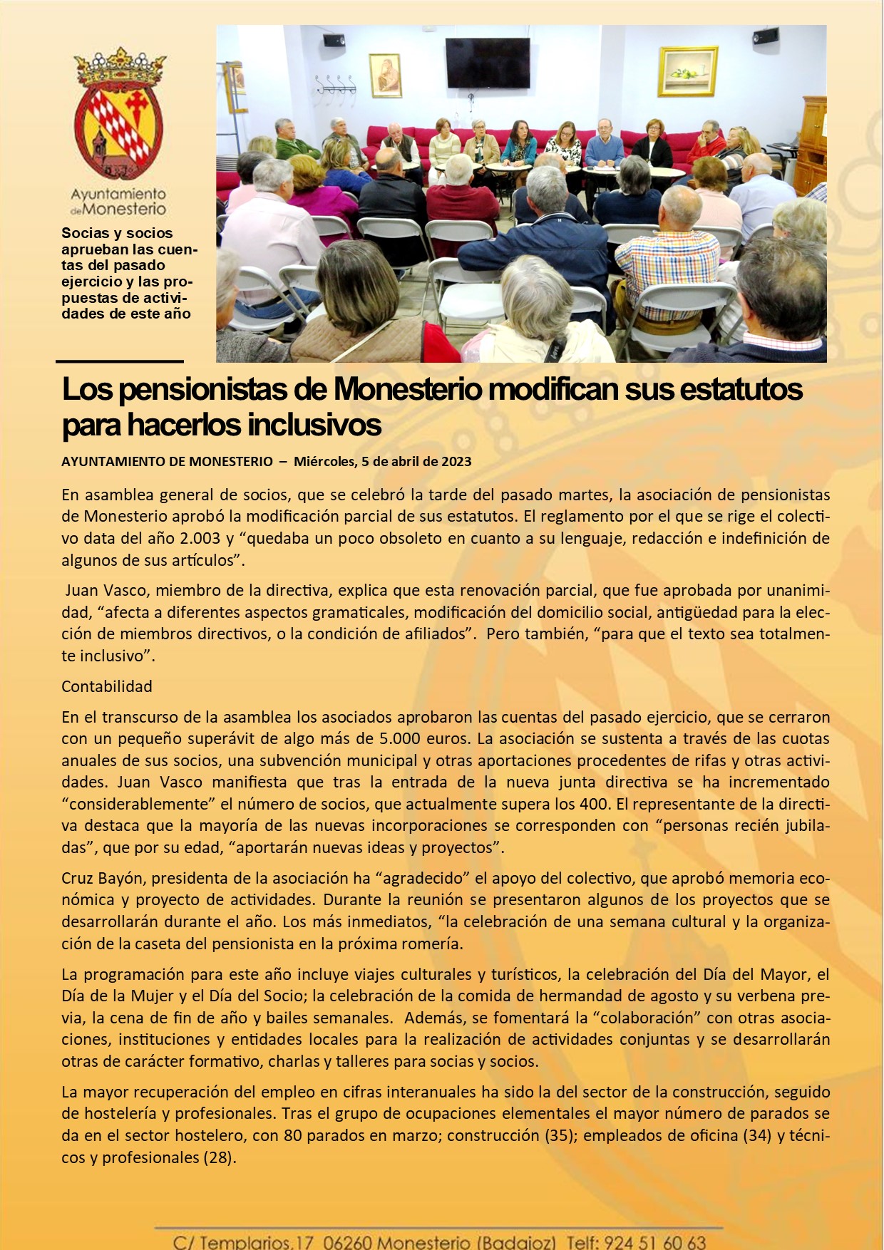Los pensionistas de Monesterio modifican sus estatutos para hacerlos inclusivos