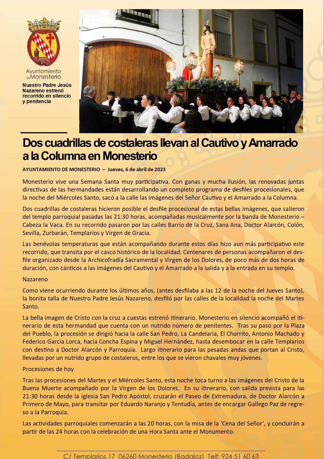 Dos cuadrillas de costaleras llevan al Cautivo y Amarrado a la Columna en Monesterio
