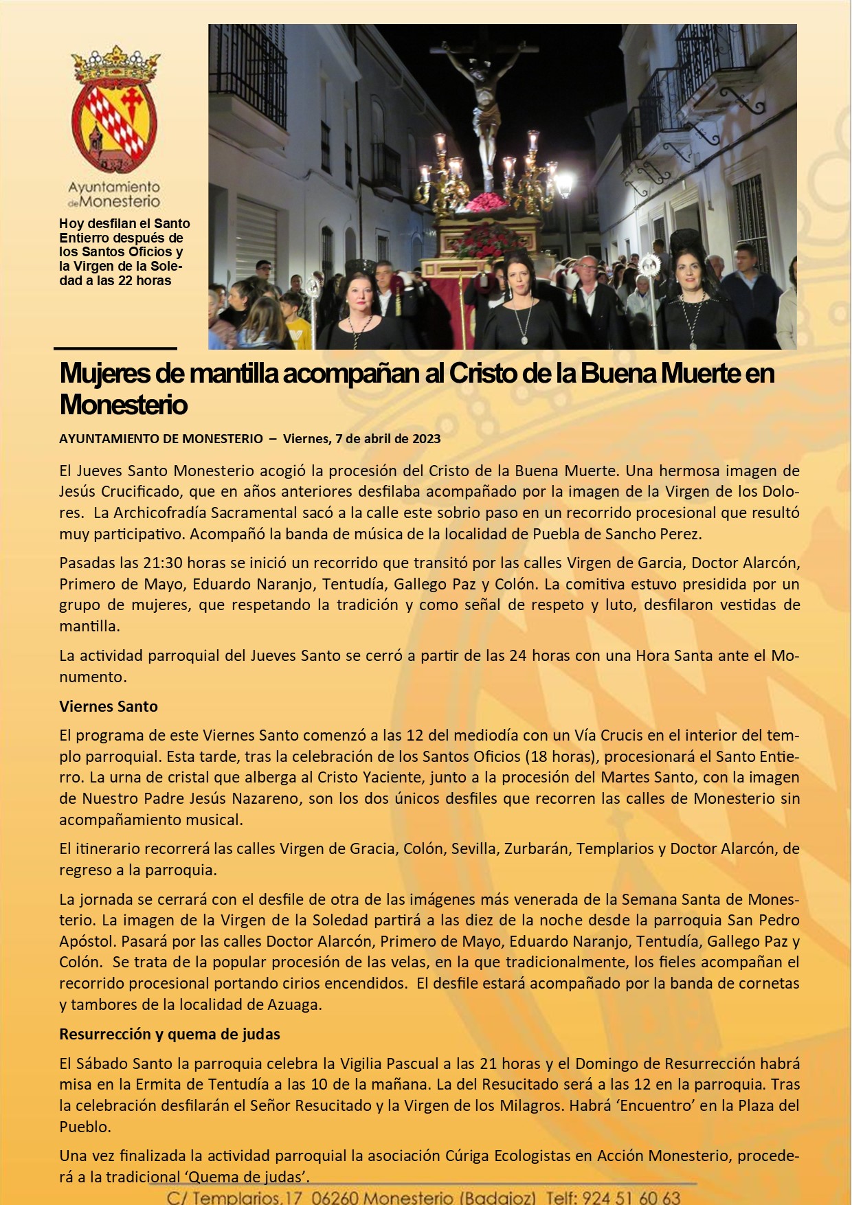 Mujeres de mantilla acompañan al Cristo de la Buena Muerte en Monesterio