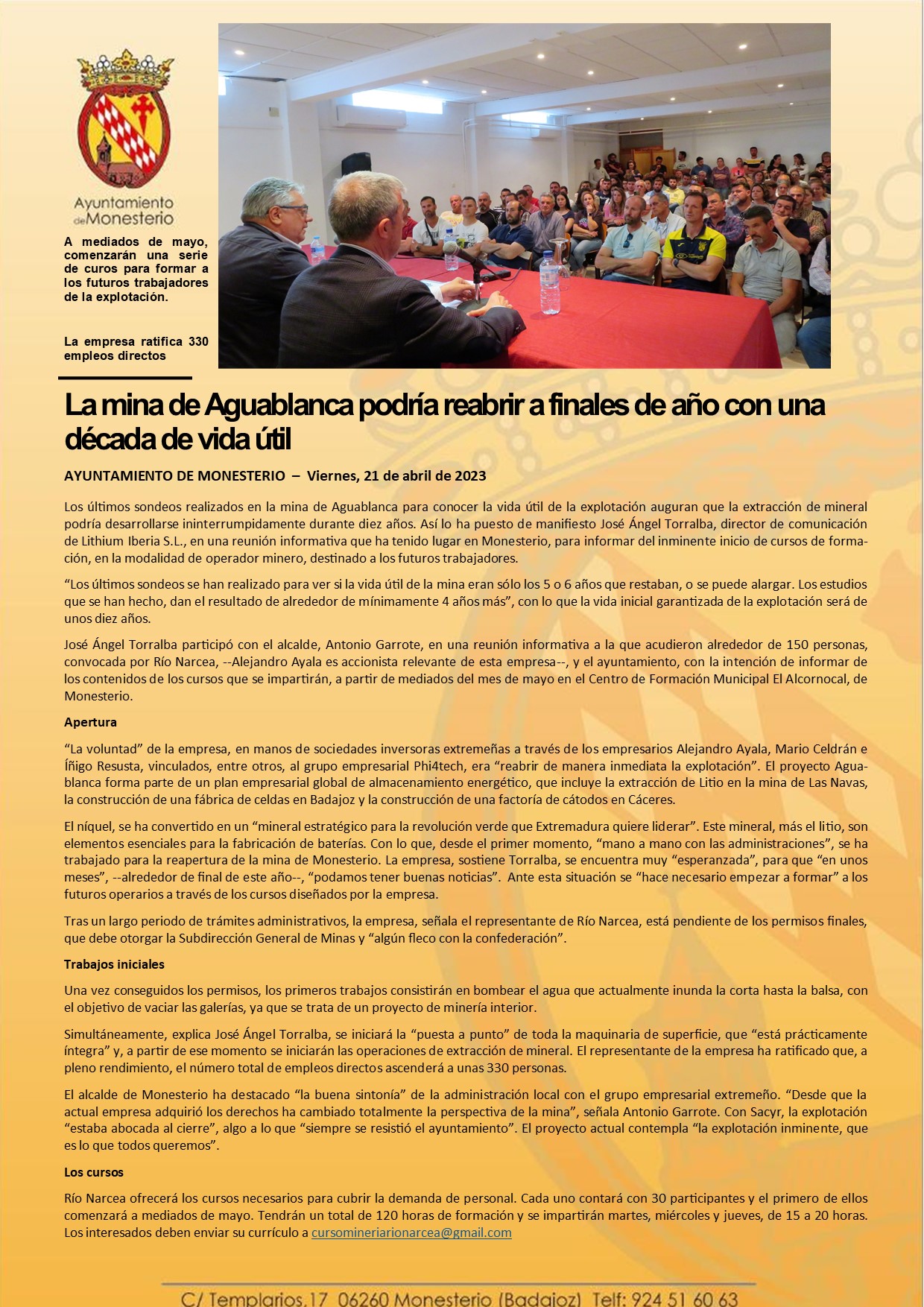 La mina de Aguablanca podría reabrir a finales de año con una década de vida útil
