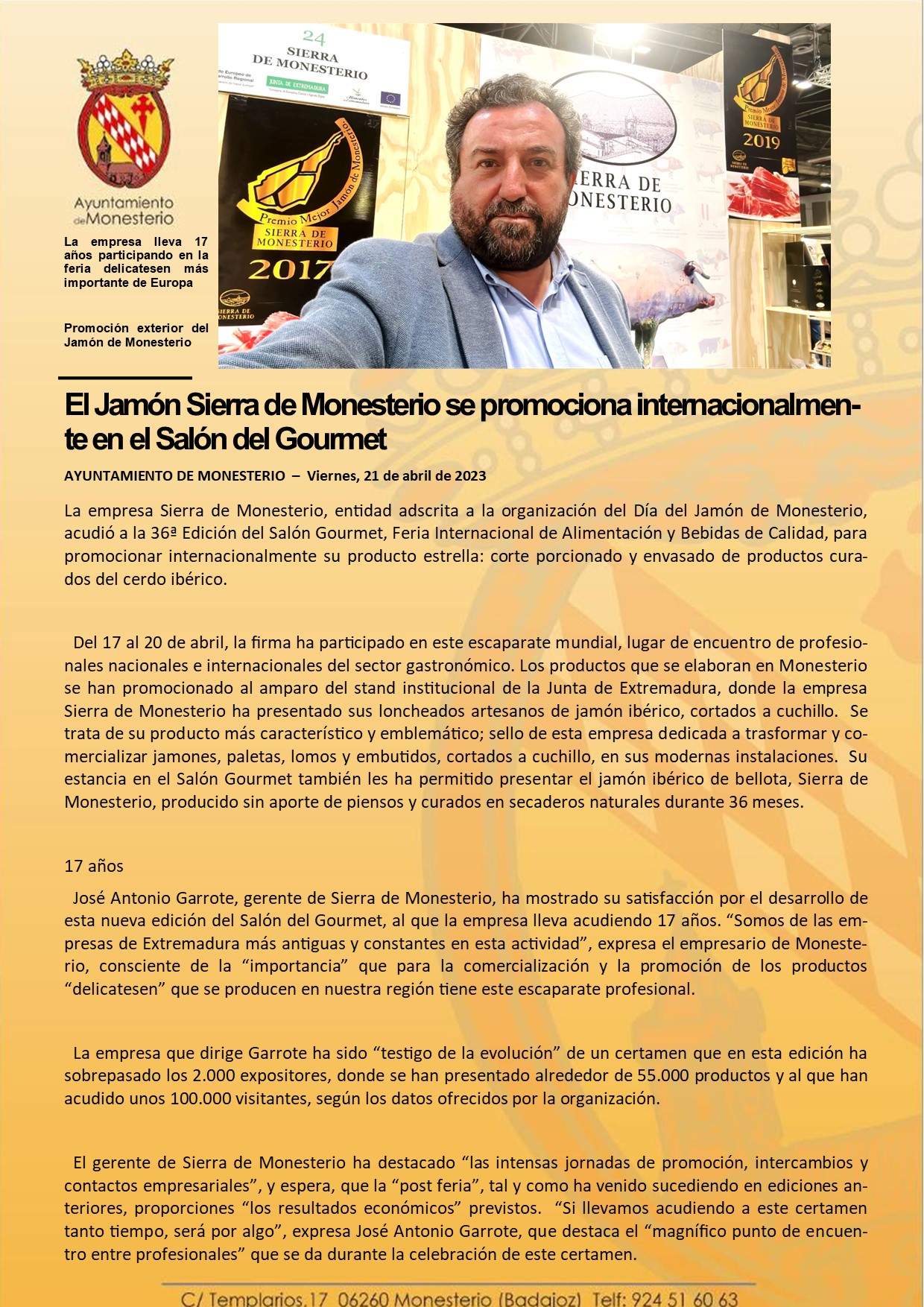 El Jamón Sierra de Monesterio se promociona internacionalmente en el Salón del Gourmet