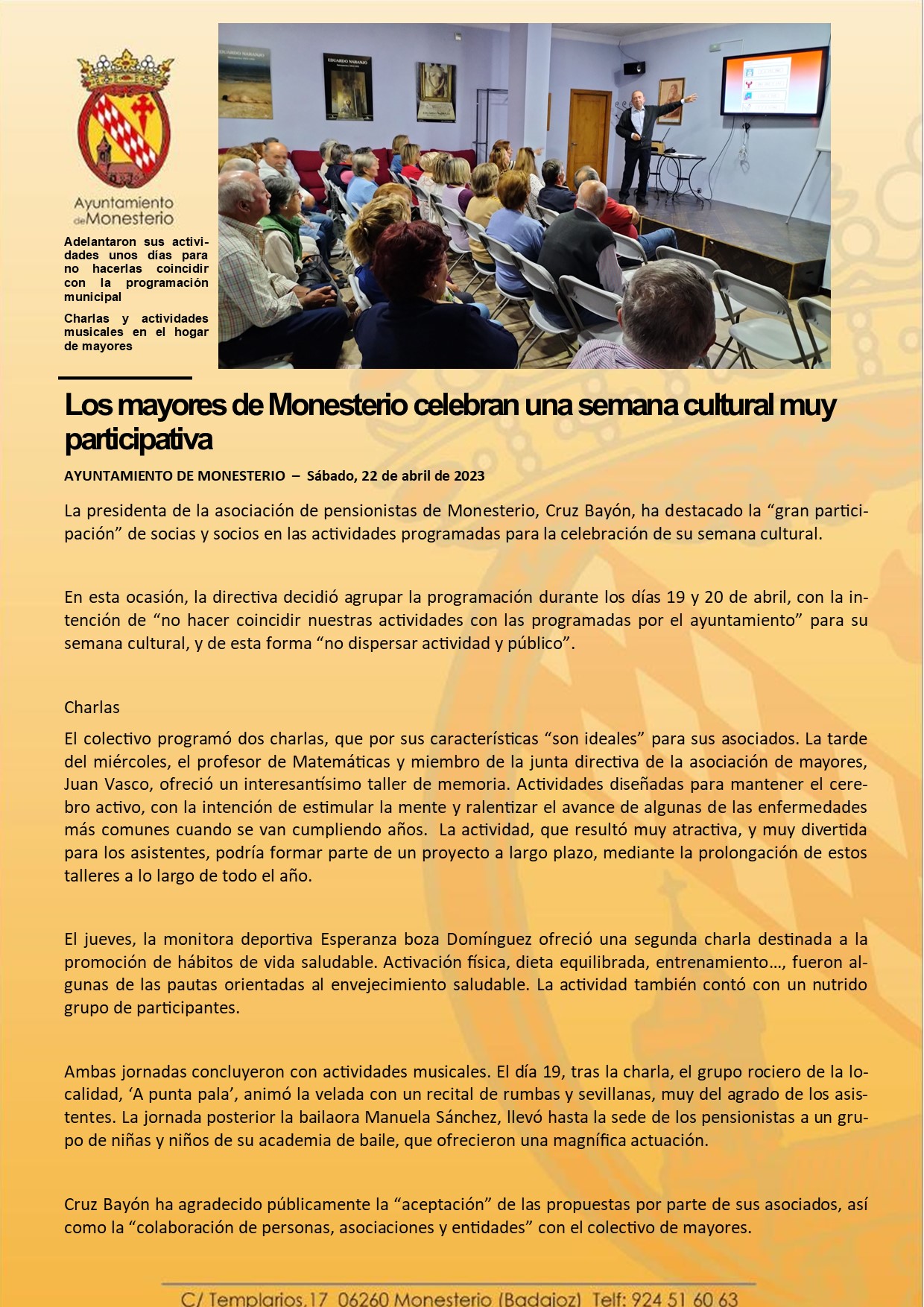 Los mayores de Monesterio celebran una semana cultural muy participativa