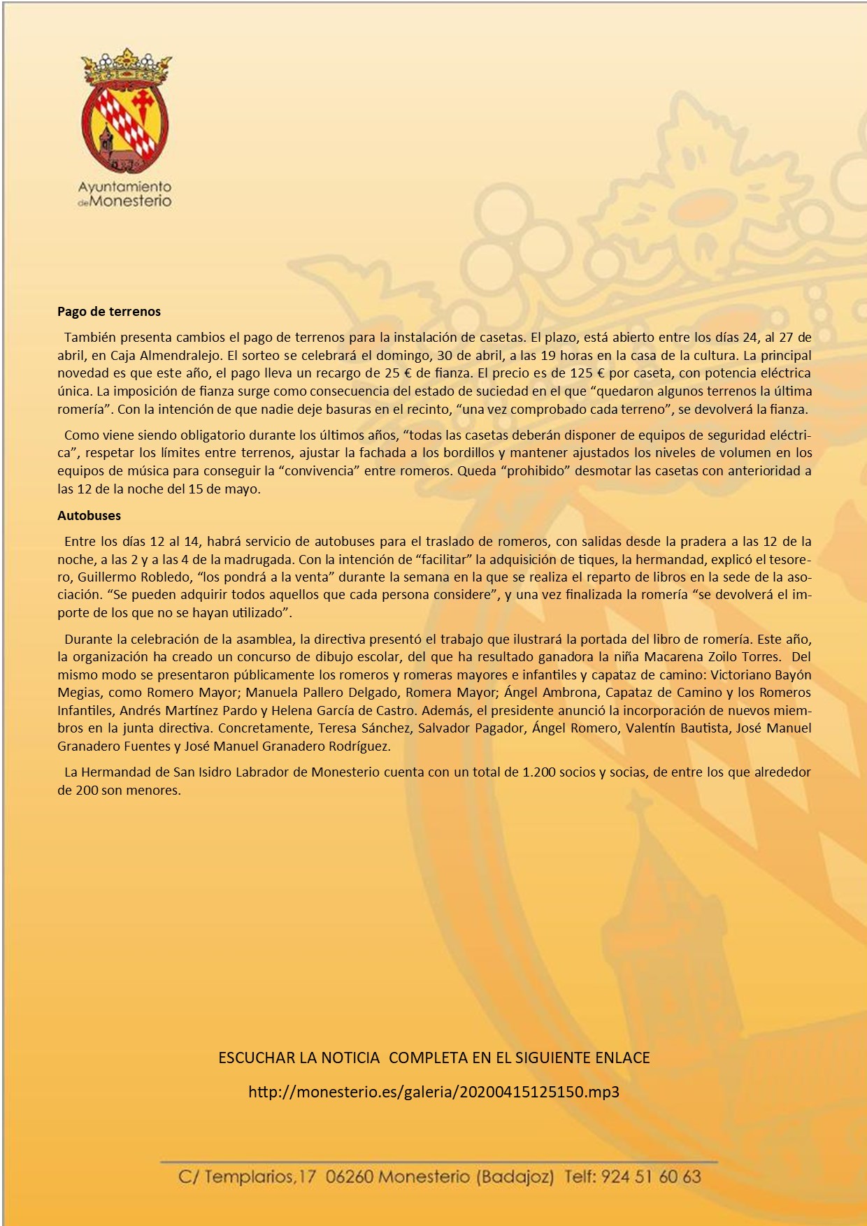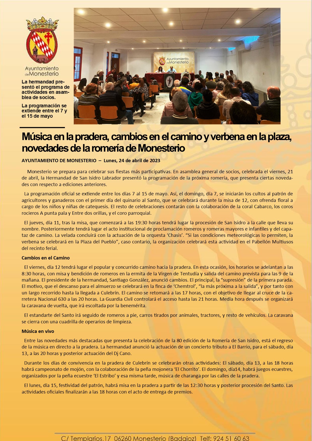 Música en la pradera, cambios en el camino y verbena en la plaza, novedades de la romería de Monesterio