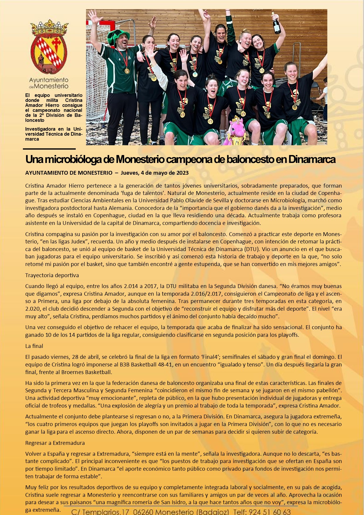 Una microbióloga de Monesterio campeona de baloncesto en Dinamarca